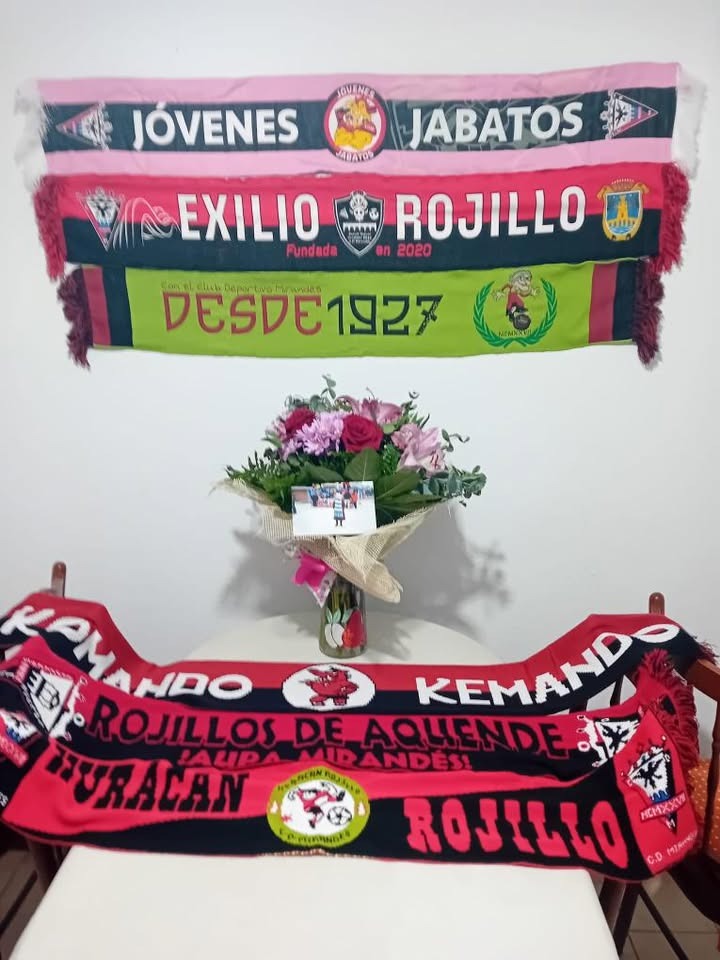 Después, los chiquis de la Peña Desde 1927 depositaron un ramo de flores ante el mural de La Paca. A continuación, cada una de las peñas rojillas presentes dejó su bufanda como símbolo de unión y respeto: